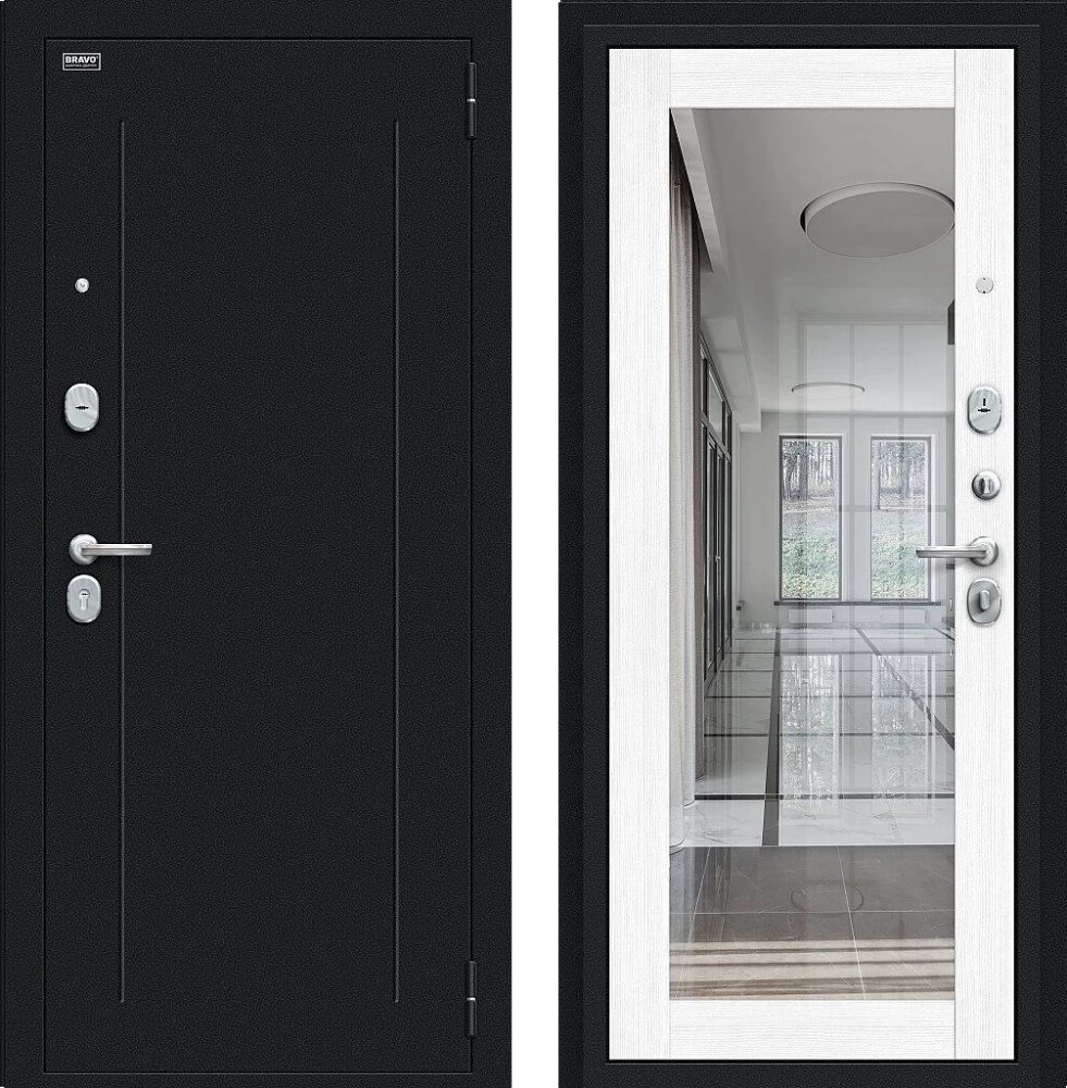 Надежная входная Дверь Браво Флэш Букле черное/Snow Melinga премиум класса по цене 33 045 руб. Большая толщина стали защитит от проникновения в ваш дом, квартиру или коттедж. Используется очень качественная фурнитура: замки, цилиндры, ручки, защелки. Покрытие и отделка двери изготовлено под внимательным контролем производителя. Дверь имеет долгий срок службы и гарантию.