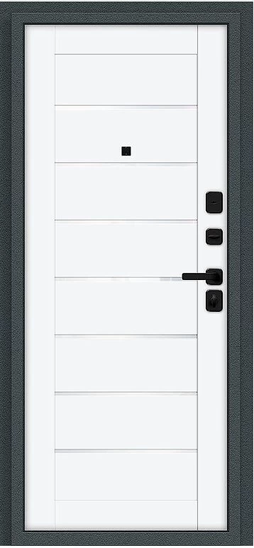 Надежная входная Дверь Браво Техно/SBlack Старк антрацит/White Silk премиум класса по цене 36 245 руб. Большая толщина стали защитит от проникновения в ваш дом, квартиру или коттедж. Используется очень качественная фурнитура: замки, цилиндры, ручки, защелки. Покрытие и отделка двери изготовлено под внимательным контролем производителя. Дверь имеет долгий срок службы и гарантию.